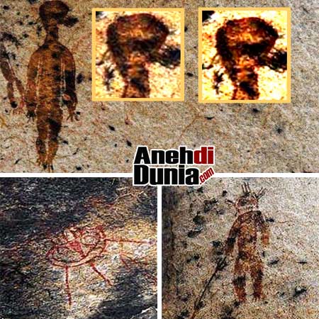 | Lukisan Alien dan UFO Gua Charama India - Departemen Arkeologi dan Budaya di Chhattisgarh, India, mencari bantuan dari Organisasi Penelitian Ruang Angkasa India untuk penelitian satu set lukisan batu kuno yang ditemukan di dalam gua-gua dekat kota Charama di distrik Kanker, di wilayah suku Bastar, menurut laporan dari Times of India. Menurut salah satu arkeolog, seni lukis gua disini mencerminkan keyakinan di antara manusia kuno bahwa kita tidak sendirian di alam semesta |